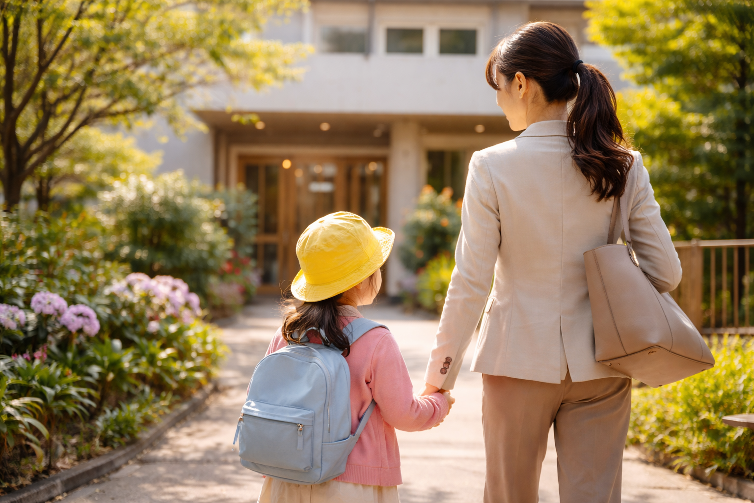 朝は早くからお弁当の準備や支度を行い、子どもを保育園に送り届けます。